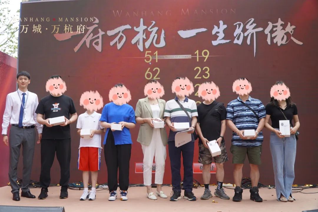 比如互动问答环节里的提问和抢答,只要回答正确与万城·万杭府相关的问题,就可以获得精美的定制礼品。还有穿插在互动和表演之间的三轮大抽奖,万城·万杭府也是大手笔的准备了华为Mate40pro手机、周大福足金转运珠、小米高清智能电视机以及油卡、吹风机等礼品。