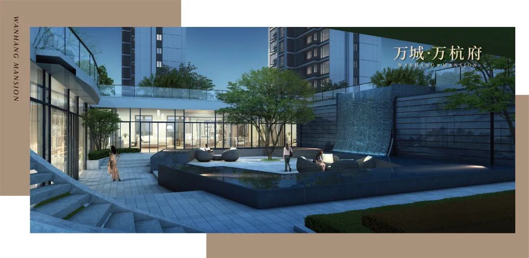 在建筑外立面和园区环境的打造上,万城·万杭府也运用了更多极具现代都市感的元素,比如用铝板+玻璃窗+金属漆的设计,以超大的窗墙比赋予人居更强烈的光感与景致。园区景观上匠筑三进式庭院和半私享花园,一步一景,一步一功能区,为全年龄段的业主们提供了各有所需的社区氛围。