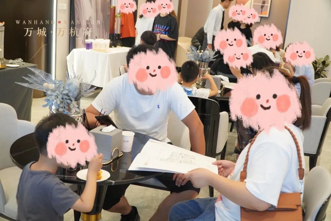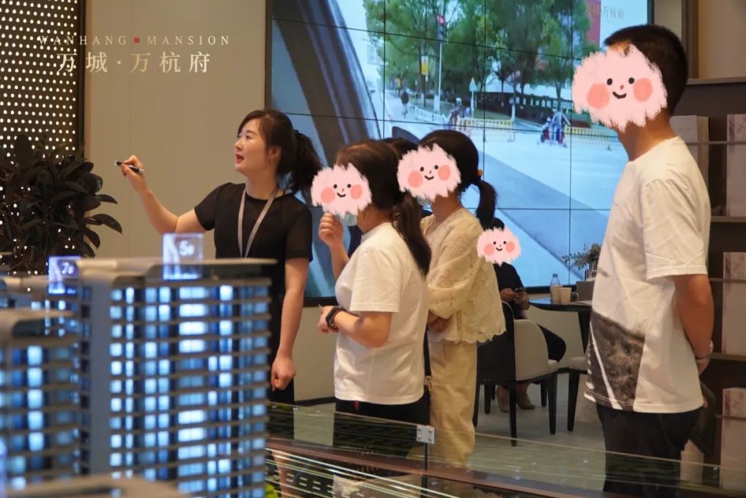 融杭封面著作,更懂双城人居向往。万城·万杭府开放当天,一早就迎来了众多慕名而来的宾客们,整个沙盘区围满了人,洽谈区也早有正在翻阅户型图,或者与置业顾问认真讨论产品信息的客户。