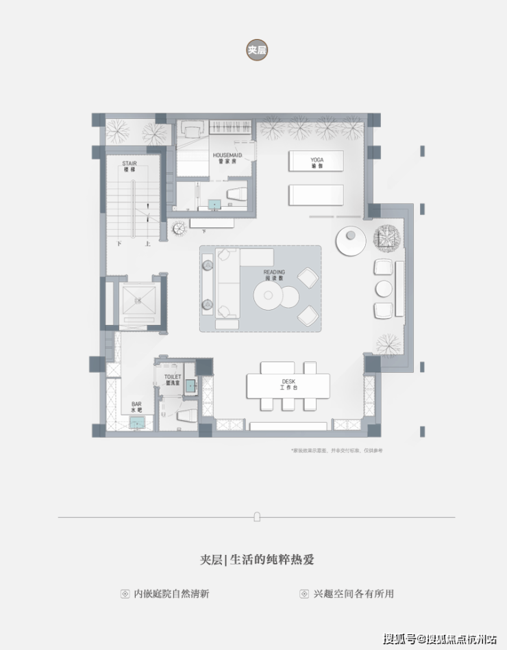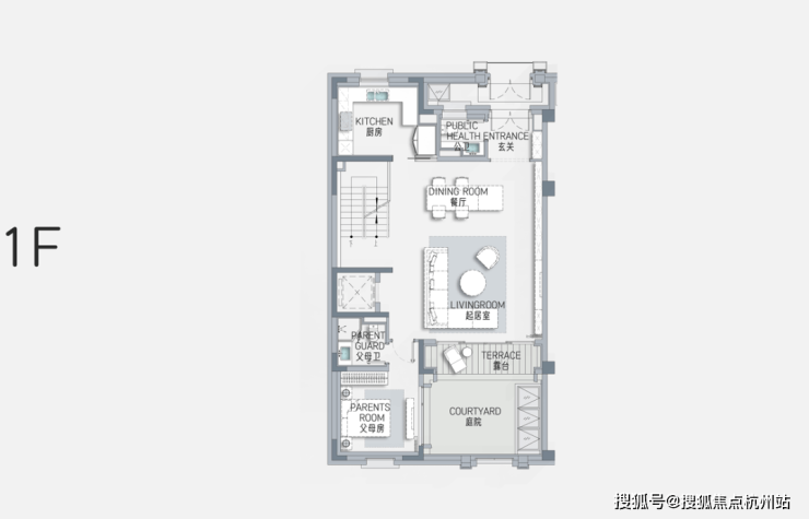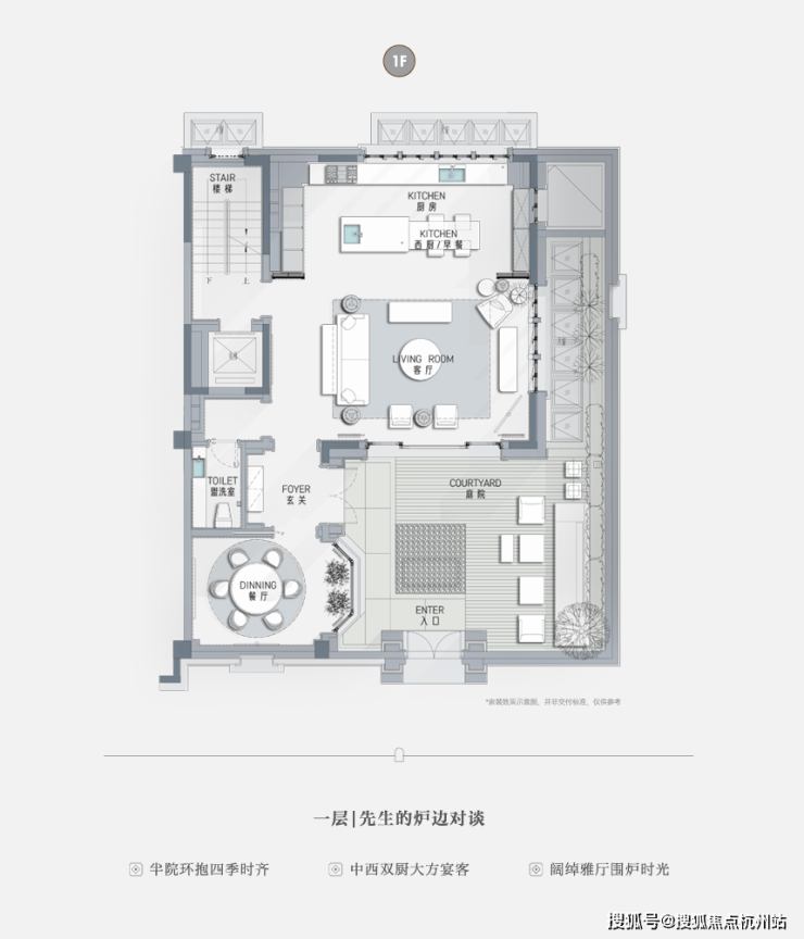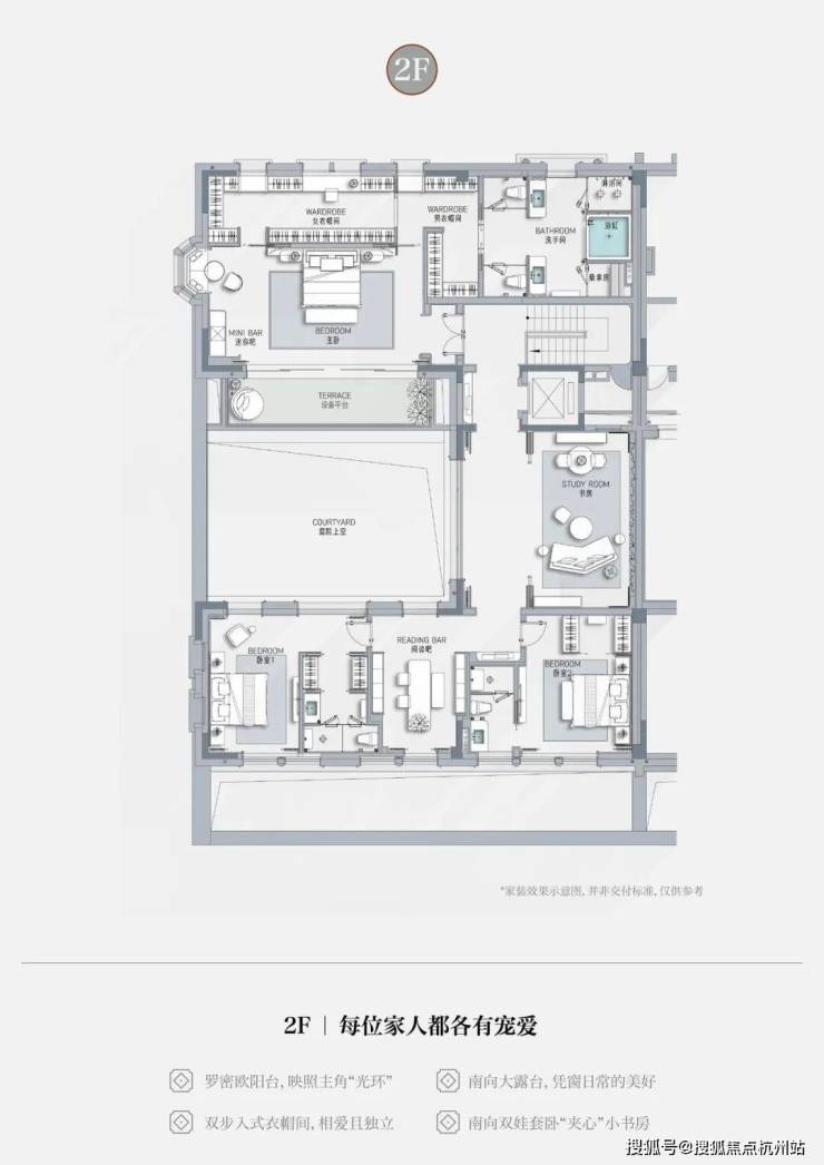一层长辈套房设计,南向独立小庭院,莳花弄草,晨练太极自在四季