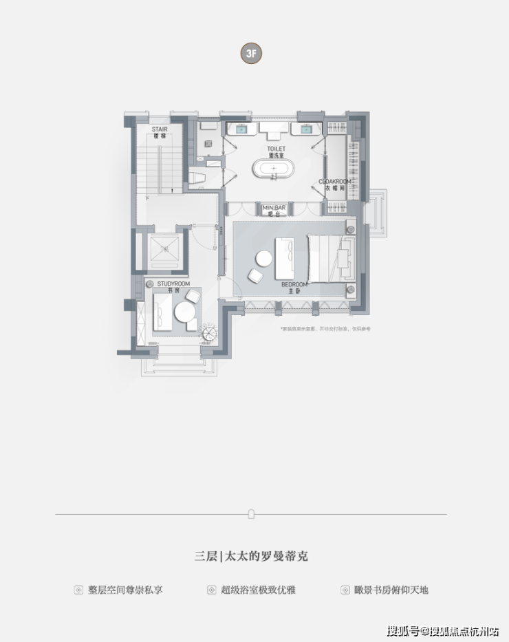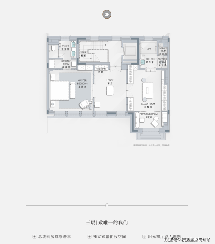 主卧双卫双步入式衣帽间,淋浴、花洒、桑拿房,相爱却各有私密