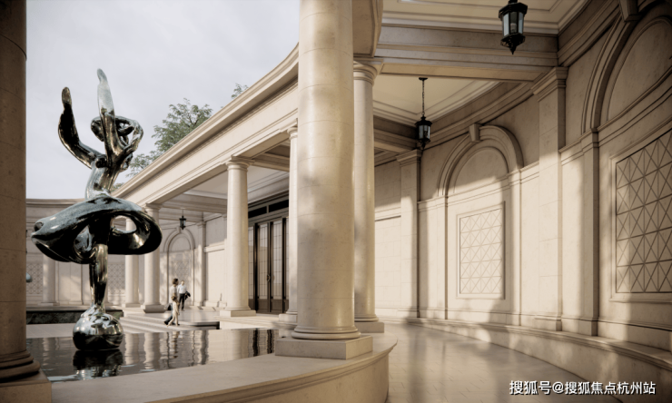 这些柱廊形成了归家路径上的华丽序列,既是风雨无阻的庇护所,也是漫步其下、感受光影流转的艺术长廊,日常归家变成了每一次都充满期待的美学巡礼。