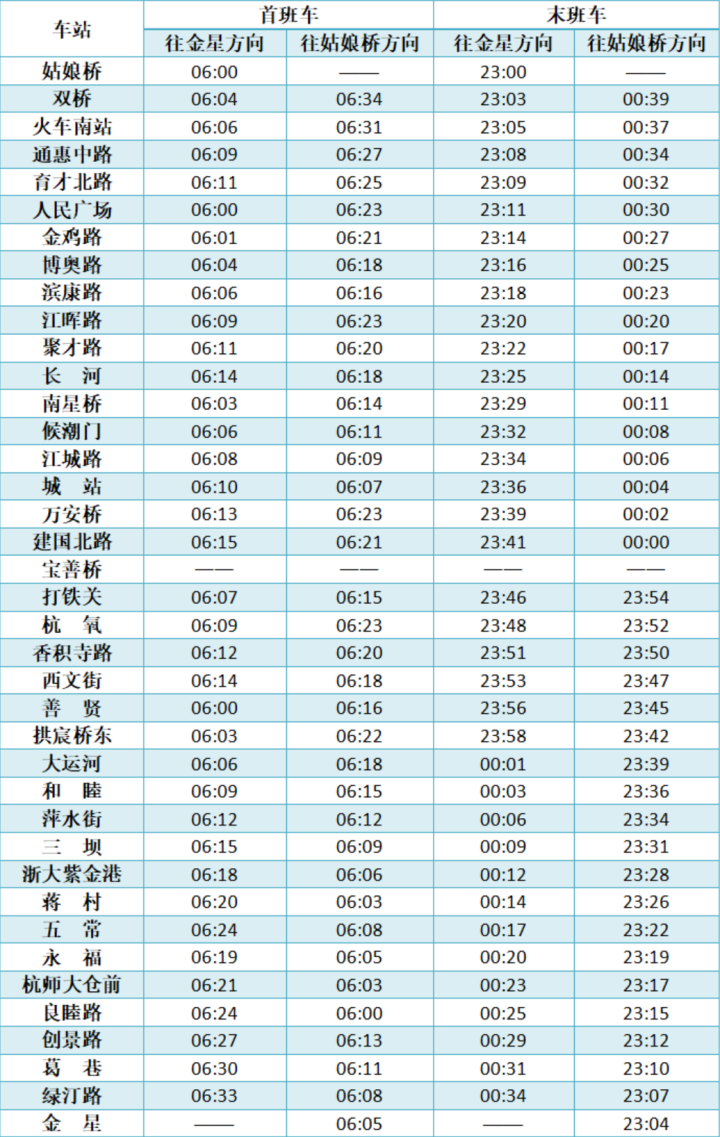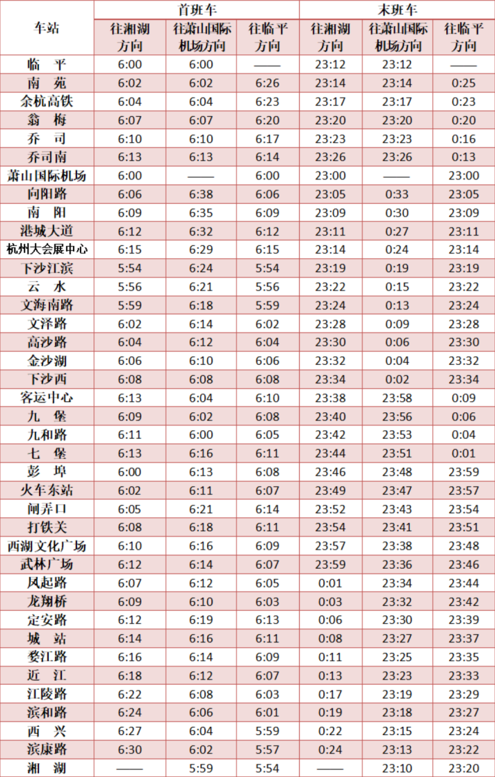 杭州发布消息 今年清明节假期为4月3日至4月5日,杭州地铁线网运营将进行相应调整。4月2日和4月5日(即假期前一天和假期最后一天),线网将延长运营半小时,1、2、4、5、6、7、16号线末班车起点站发车时间延长至23:00左右。4月3日、4月4日运营服务时间不延长,将视情况加密行车间隔。 1号线 首