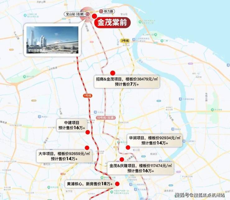 2024年12月30日,金茂&宝冶&杨行城建于2024年八批次土拍中以31.16亿竞得宝山站商住组合地块(宝山区BSP0-0801单元13A-01、02aA-04地块),楼面价9058元/㎡,住宅中小套型占比50%,集采价2500元/㎡。