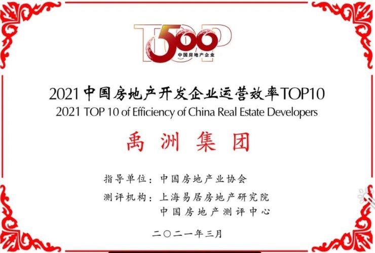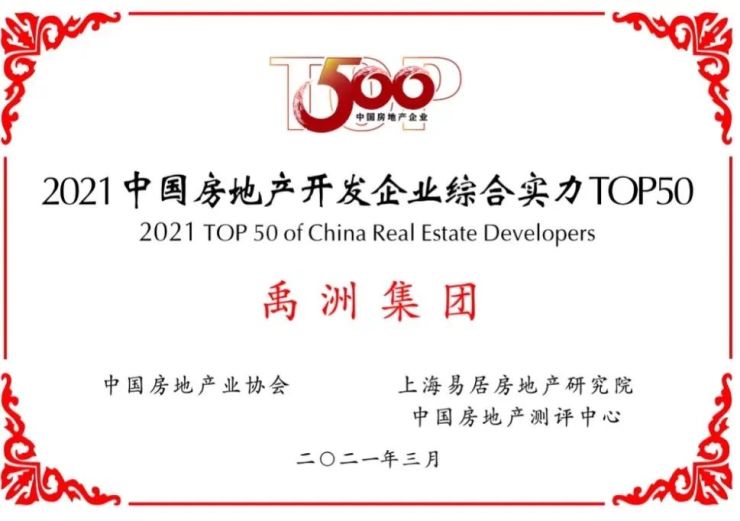 禹洲集团凭借稳健的业绩以及始终如一的匠心,不断斩获多项殊荣。在“2021中国房地产先进100榜颁奖盛典”中,禹洲连续斩获“2021中国先进100榜”第37位、“2021中国房地产上市企业30强”第23位两项荣誉;在“2021中国房地产开发企业综合实力TOP500”成果发布会上,禹洲集团蝉联“2021中国房地产开发企业综合实力TOP50”第39位。