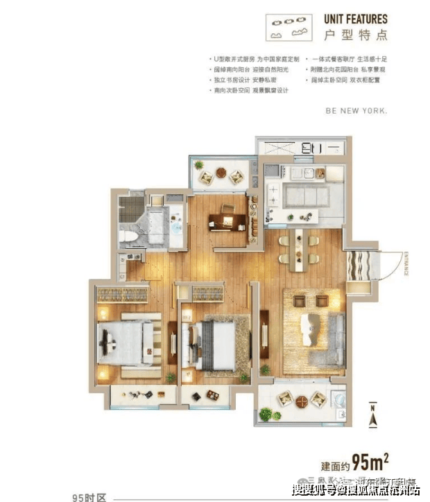 卧室:双朝南主卧,均带套卫与衣帽间。。 卫生间:三个卫生间设计,日常生活非常方便。。 其他:户型方正,南北通透,采光优越。。 阳台:南北均带阔绰阳台,室内采光通风极佳。。