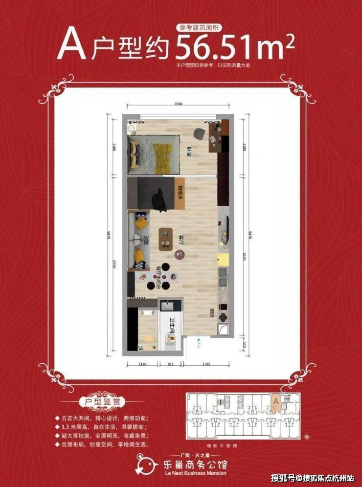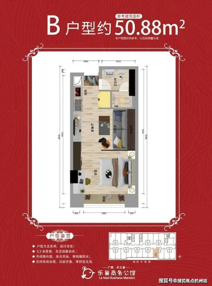 【在售面积】50㎡、56㎡、64㎡(一室一厅一卫)
