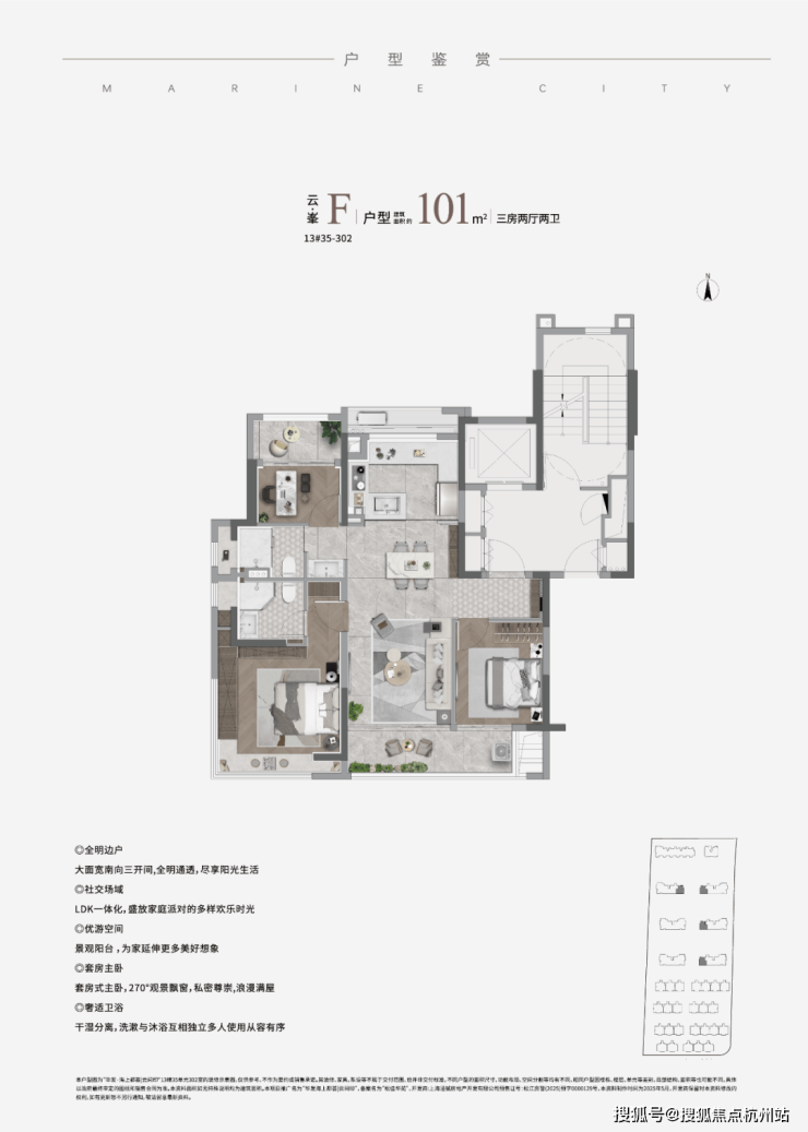 1. 建面约101㎡的三房两卫(高层):刚改的“神户型”