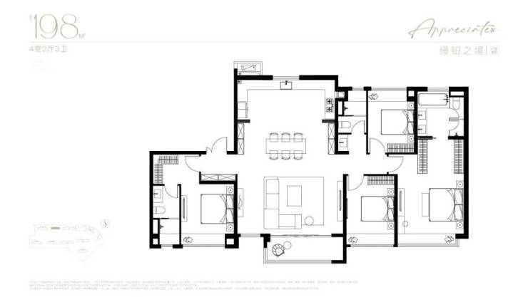 终极改善的顶奢4房!极端宽奢的南北通透户型飞机户型,你能想象到的美好都能在这个户型中体验到。