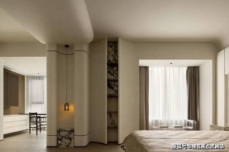 LDBK一体化的公区,充分实现了家庭成员间的互动;除了边厅外接的阳台外,南向次卧同样设计了阳台,兼顾了景观和晾晒的需求。