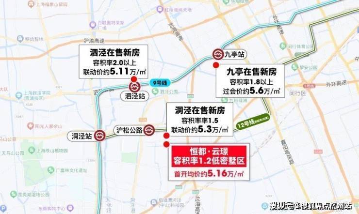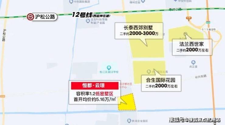 12号线西延伸沪松公路站旁(在建中),容积率仅约1.2的恒都·云璟火热认购中!主推建面约91㎡洋房和建面约150-160㎡别墅,均价约5.16万/㎡!