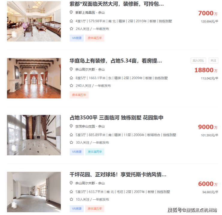 打开链家网不难发现,区域内的别墅项目动辄千万起步,三四千万的总价更是常态,甚至是上亿级别的别墅都比比皆是。
