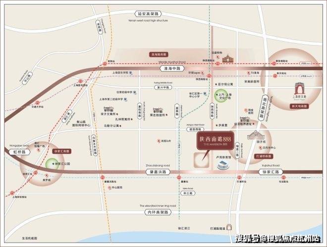 上海徐汇陕西南路888售楼处电话:400-8778-334位于陕西南路肇嘉浜路口,属双轨地铁房:距离地铁9号线、12号线嘉善路站直线距离约150米.