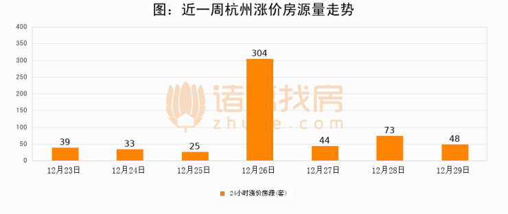 根据诸葛找房数据显示,杭州24小时涨价房源量为48套,较12月28日减少25套,环比下降34.2%。与此同时,涨价房源占比小幅回落,对于购房者来说是一个入市窗口期,购房者可抓住时机入市。