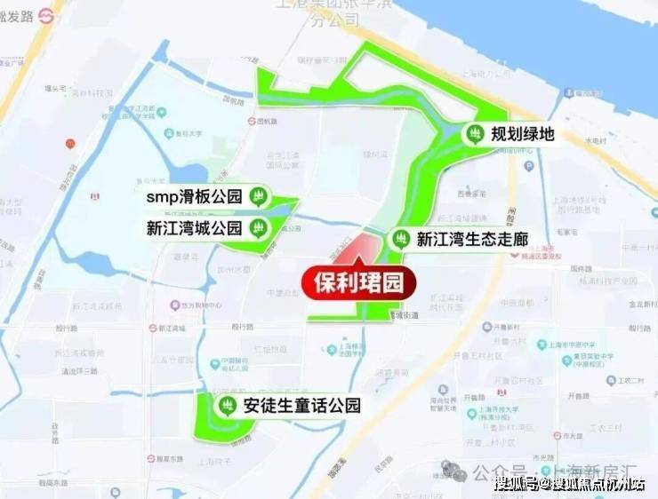 新江湾城拥有四大城市公园,其中项目西侧有约7.35万公顷的新江湾城公园,SMP滑板公园,安徒生公园,项目北侧和东侧是约24万方的生态走廊,还有9条天然水系,聚集了200多种鸟类。