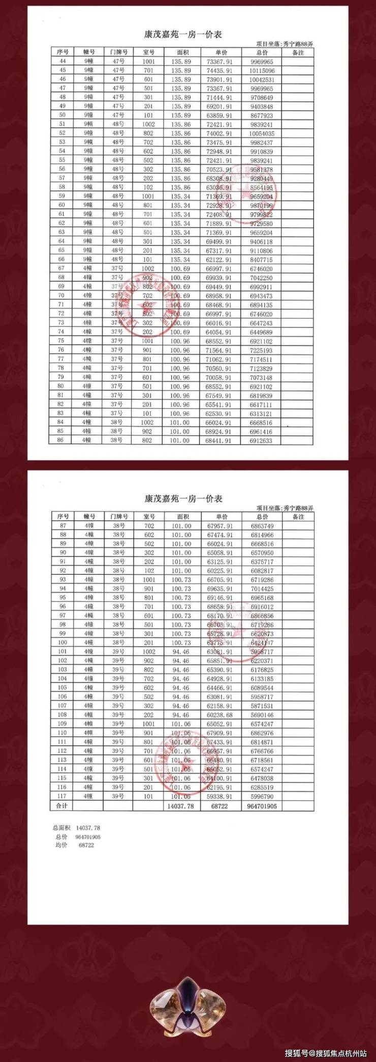 最新一房一价表曝光: