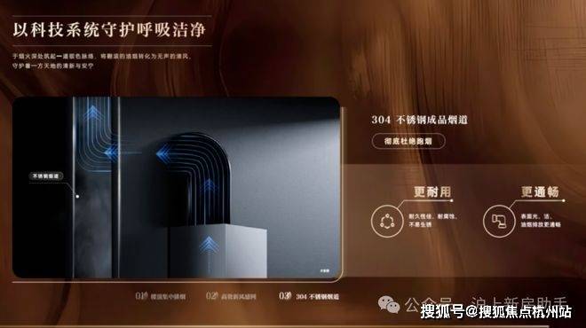 ◎ 衡洁:清鲜如一的全域呼吸。摒弃传统水泥烟道,升级 304 不锈钢烟道系统,从结构上消除回烟与异味困扰;搭配多重滤网新风系统,PM2.5 过滤效率超 98%,让每一次呼吸都清新畅然。