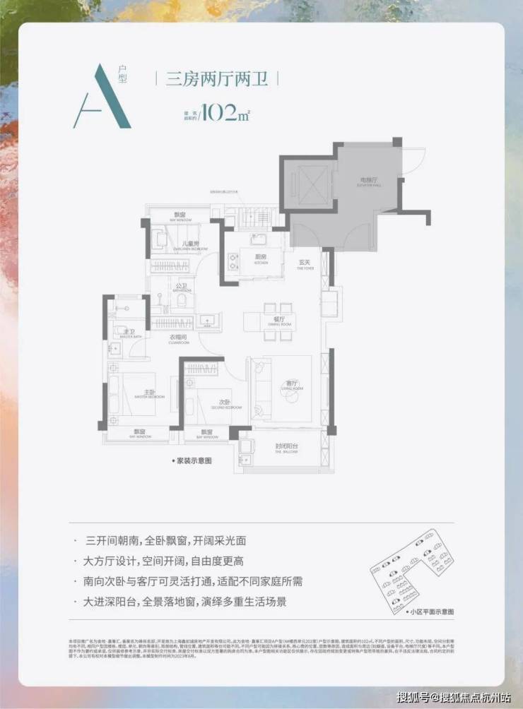 高层: 建面约102㎡(3房2厅2卫)
