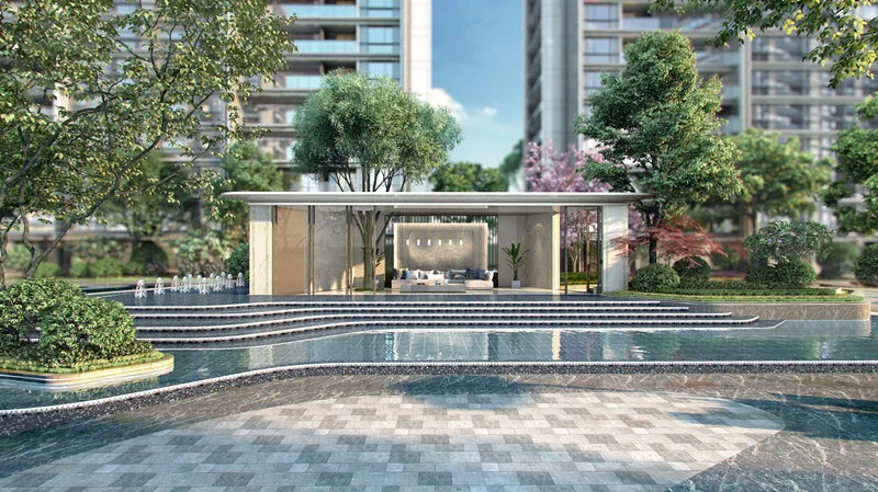 园区北侧,高层之间围合出一处约550㎡的跌级水景和儿童戏水池。家家推窗见景,下了楼,又能来一场亲密的嬉水之旅。