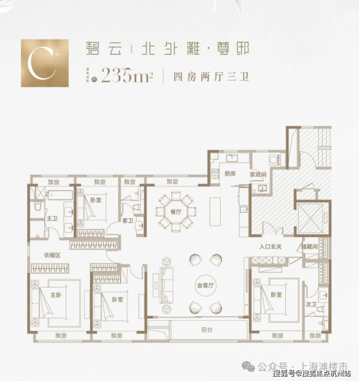 碧云北外滩户型为清一色180-235㎡奢装大平层,所有户型都做到类一梯一户设计