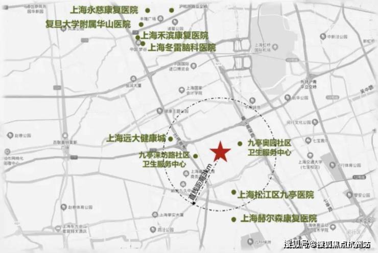 项目周边聚集多家三甲医院和高端康复及专科医院:如复旦大学附属华山医院虹桥院区、上海冬雷脑科医院等。