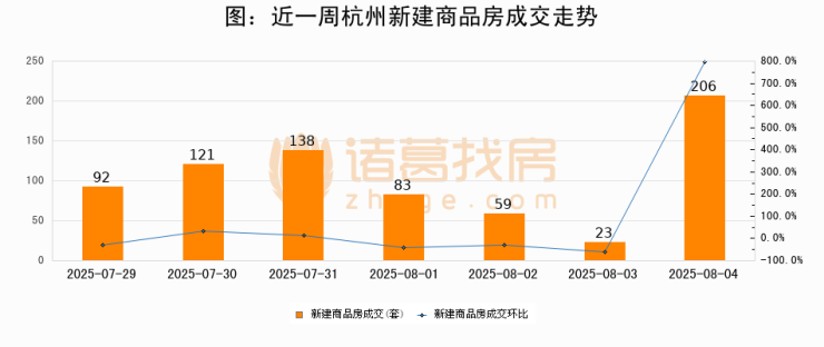 【杭州成交日报】08月04日新房成交206套、二手房193套;涨价房源32套