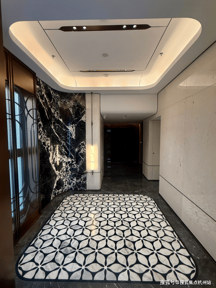除了地库实景外,安高申陇院的 170户型一楼入户大堂 获得业主的一致好评。推门而入就是私属礼宾前厅,以艺术馆般的归家序厅赢得青睐。