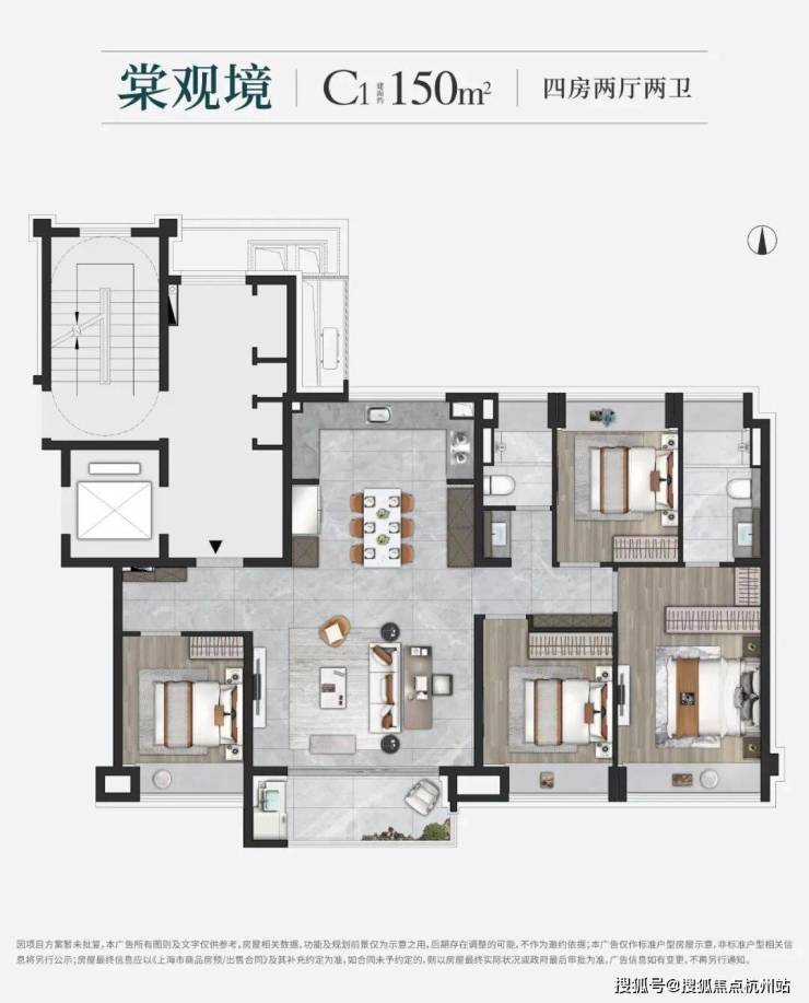 如果家庭有二孩或者三代同堂需要的,那建面约150㎡的四房大平层一定要优先加入您的“购物车”,标准的“大面宽短进深”的黄金户型格局,直接让人竖起大拇指: