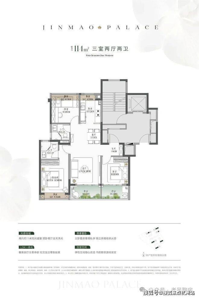 ● 建面约114㎡3房:低总价上车首选,闭眼可冲。