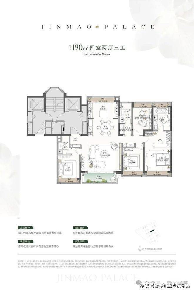 ● 建面约190㎡4房:楼王位置的顶奢大平层,同价位段在杨浦只能买到约120㎡3房!