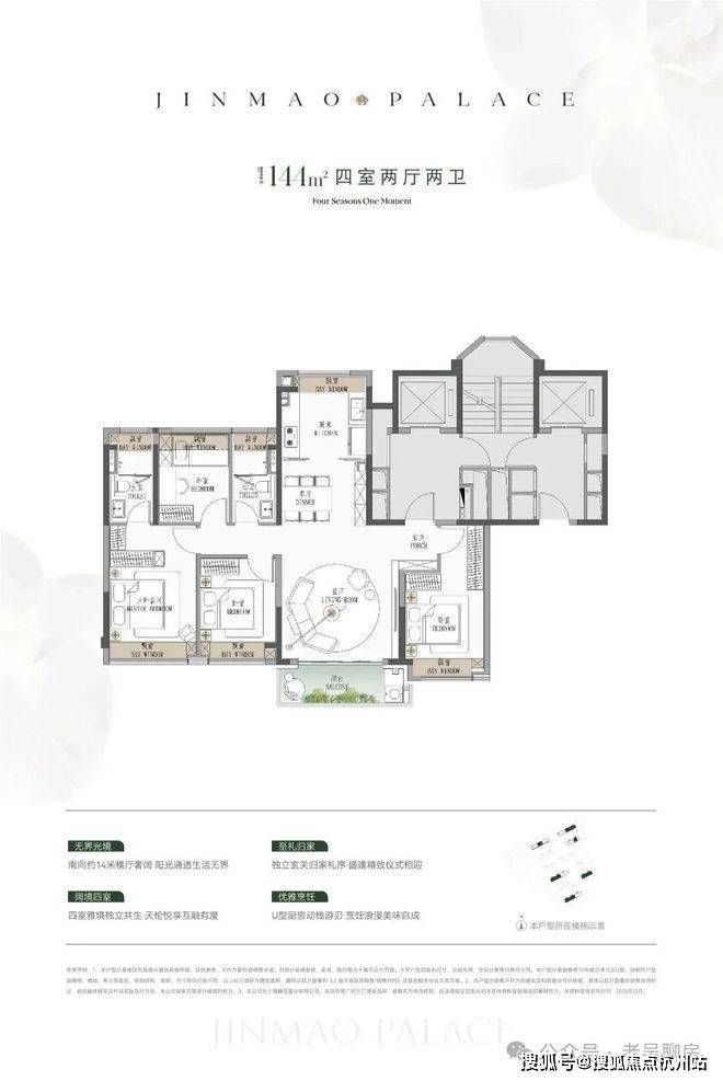 ● 建面约144㎡4房:同价格在杨浦只有百平米3房可选。