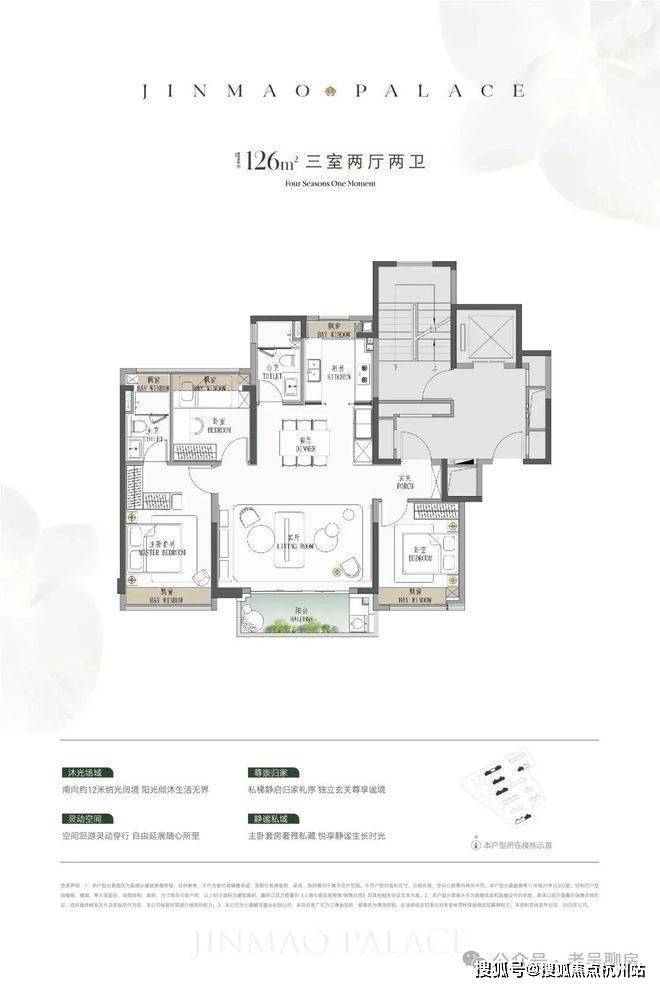 ● 建面约126㎡横厅3房:一步到位顶奢3房,全杨浦没有竞品。