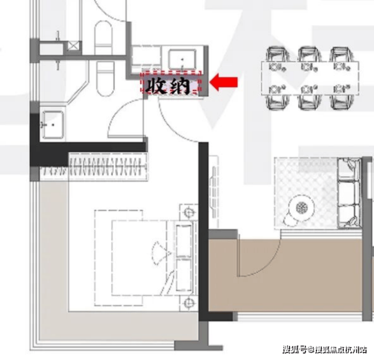 类似户型一般做到主卧套房问题不大,但在衣柜、卫生间之外,再多出一个收纳空间,则十分难得。