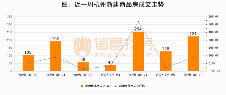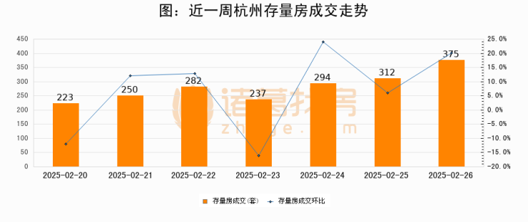 【杭州成交日报】02月26日新房成交224套、二手房375套;涨价房源67套