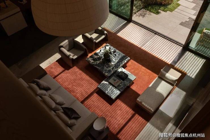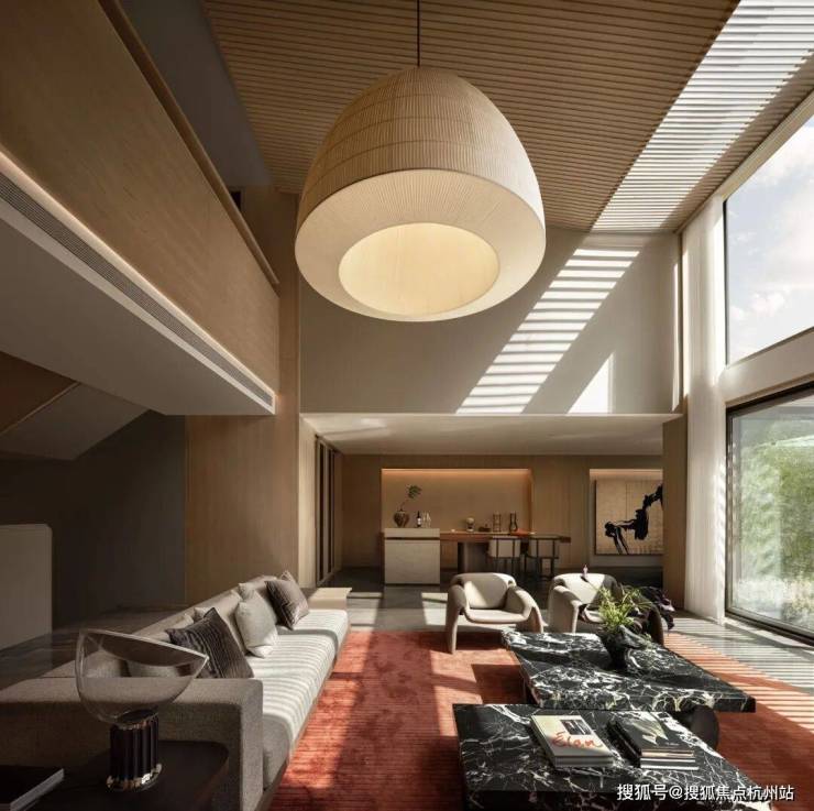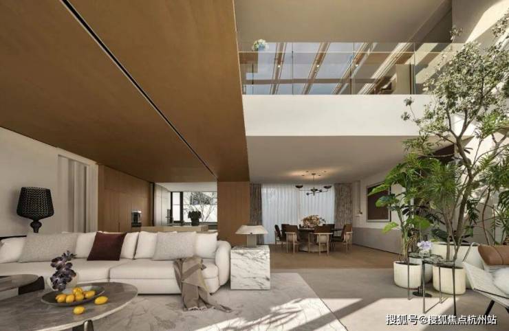 6.7 米挑高阳光厅:苏州市场罕见设计,打破传统合院采光局限,全天候引入自然光线,室内外无界融合。