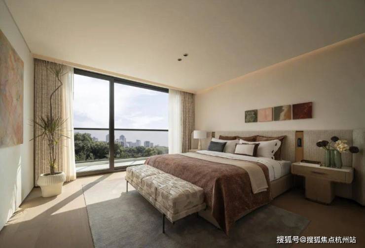 全景落地窗设计:270° 观湖视野,客厅、卧室全明通透,湖光山色入室成景。