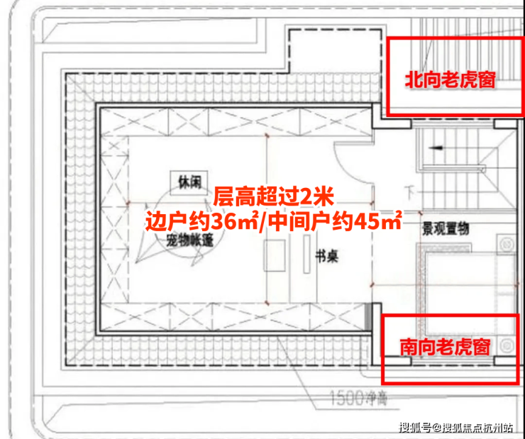 ④, 同样拥有面积可观及采光通透的 闷顶空间 (边户约37㎡/中间户约38㎡)