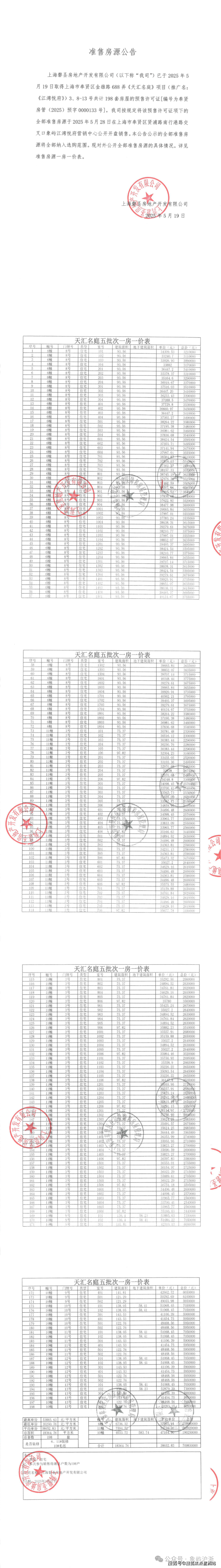 一房一价表发布: