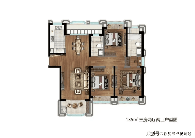 户型:主力为95㎡2室2厅和135㎡3室2厅
