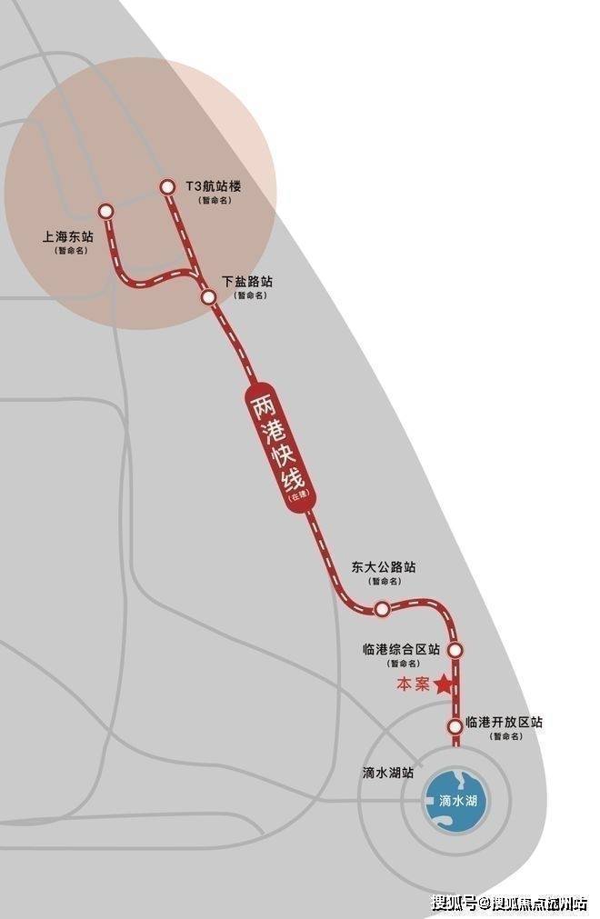 项目位于临港105片区,距离16号线滴水湖站约3.2公里,16号线可与2、7、9、11、13号线实现换乘;