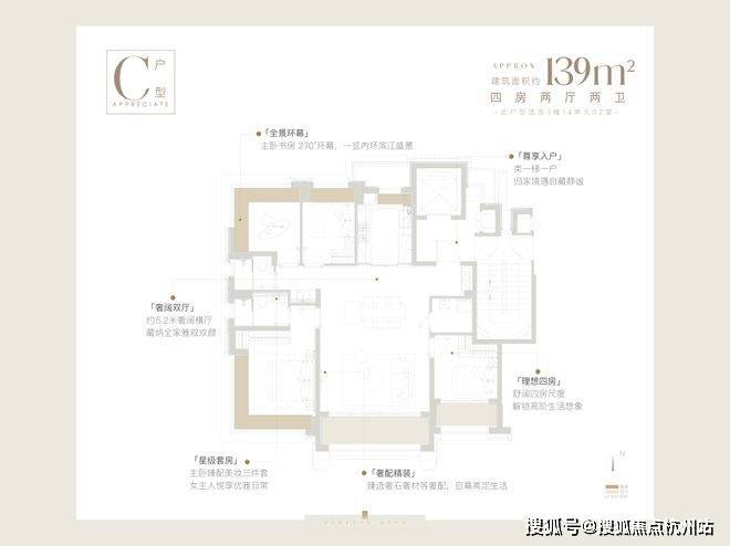建面约139㎡户型,定制规格全面升级,✅保利外滩曜售楼处电话:400-891-9910玄关+背景墙由岩板升级为奢石,芬迪白、万象山河、海蓝之谜三选一,✅保利外滩曜售楼处电话:400-891-9910天然肌理自带传世质感,每一寸都彰显高端格调。地板升级为百亿豪宅世博天悦同款造型,✅保利外滩曜售楼处电话:400-891-9910更匠心融入嵌铜工艺,质感再升阶,颜色可在深浅两色中甄选,花纹更有三种款式可选。