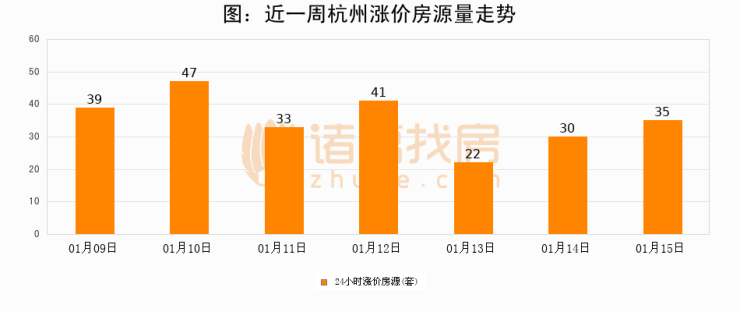根据诸葛找房数据显示,杭州24小时涨价房源量为35套,较01月14日增加5套,环比上涨16.7%。与此同时,涨价房源占比小幅扩大,业主信心有所提升。