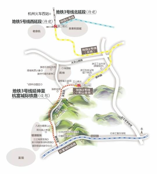 最近,杭州规划和自然资源富阳分局透露,富阳分局已经将“如何连接地铁3号线小和山支线和杭富城际铁路的建议”,上报至杭州市市级层面,并将“积极争取能纳入杭州轨道交通线网规划内”。