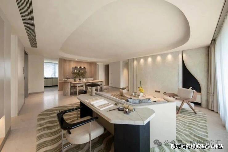 陶砚176㎡户型:取陶砚之自然璞实感,雕琢白冰玉的背景墙,客厅吊顶还原砚台造型,室内饰以瘦金体笔划装饰线条。从太太幸福厨房系统、天使之眼安全监控平台,到宠物清洁站,杭序府用洞察赋智慧以温度,让科技完成从工具到人性的进化。
