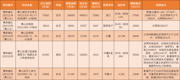 今日5宗涉宅用地,滨江、兴耀、华景川都是去年土拍市场的常客,竞得衙前另一宗宅地的郡原则是多年不见的“老面孔”。