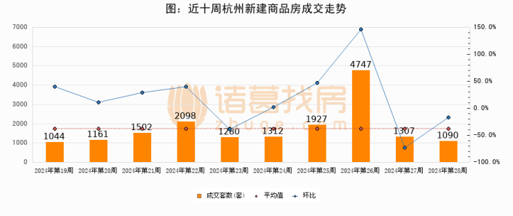 【杭州成交周报】第28周新房成交1090套,二手房1590套,涨价房源275套
