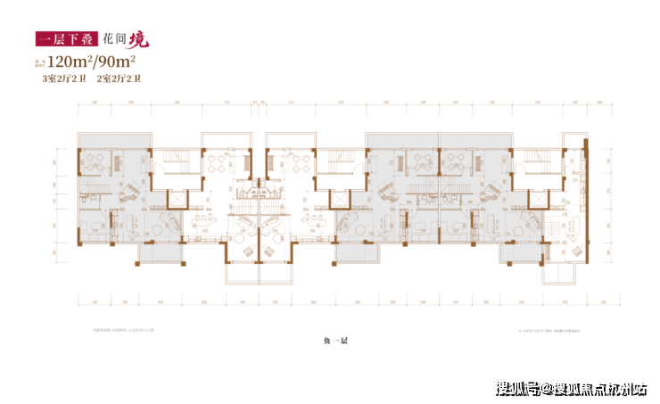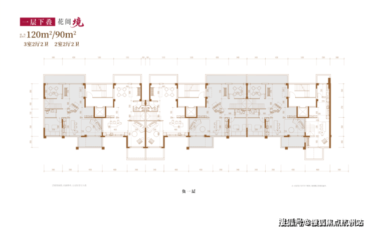 建面约120㎡3房2厅2卫/90㎡2房2厅2卫(一层下叠):