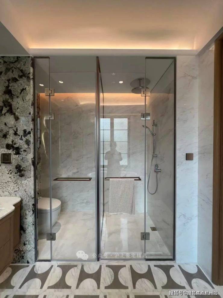 当然,室内更超乎想象。除了在选材上择取了高贵高质的石材、皮革影木等高档材质外,制作工艺才是真正的品质表现。从无限连纹地砖铺设到花瓣拼式的地板效果,以及香格里拉翡翠水刀拼花的背景墙面,整个空间展示的不仅仅是品质,更是审美,接近于艺术的审美表达。
