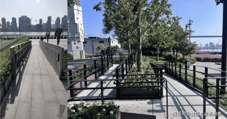还有一点“小事”,更体现杨浦滨江的人性化和友好性——无障碍环境建设。比如,在杨浦滨江你会看到这样的路面设计,这是为了让轮椅出行的人群更通畅。