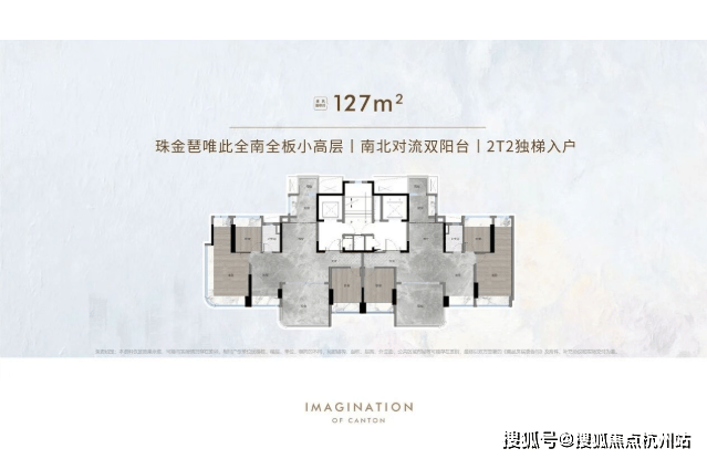 与一期相比,二期的户均园林面积是前者的1.7倍,可谓推窗见绿,下楼入林,享受CBD里独一份的“奢侈”。主力户型为建面约127㎡和170㎡,清一色16-17层小高层,T2南向板楼。户型设计上,既延续了之前的爆款基因,又实现了面积控制与产品力的双重进阶